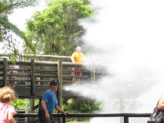 We rode "Journey to Atlantis" (front row--woo!), and caught the Clyde and Seymor show (which btw, was the same script as it was five years ago). We saw the dolphins, but didn't feed them. This attraction was much less appealing now than it had been before. Non-feeders had virtually no chance of touching a dolphin, since the visitors with dolphin-food were led to a gated area from which they were to dispense their food. Dolphins aren't stupid--they stayed where the food was, which was where we weren't. We might have purchased a tray of dead fish but then, there was a very long line for that.
